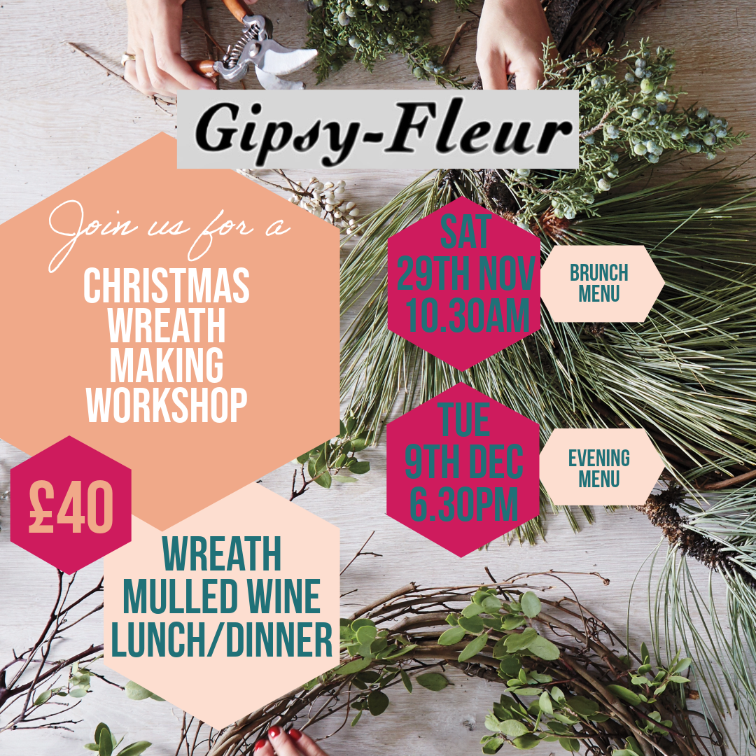We've teamed up with local florist Katie Lowry who will take you through each step to make your wreath ready to take home. We'll have a brunch/dinner menu alongside the class all included in the £40 price.